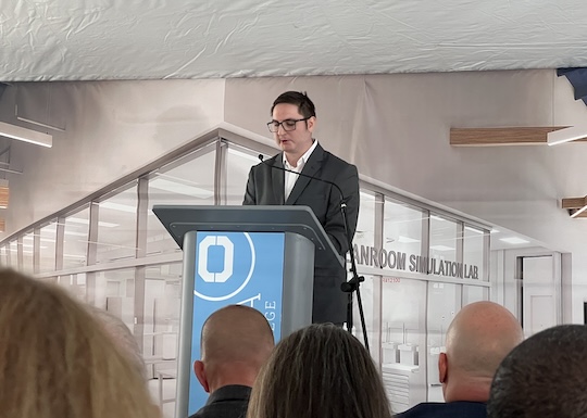 Onondaga Central Schools is incredibly proud to celebrate OCS Class of 2020 graduate Nick Hay, who is currently enrolled in the Electrical Mechanical Program at Onondaga Community College. Nick recently served as a keynote speaker at the official ribbon-cutting ceremony for OCC's new Micron clean room lab. This was a meaningful moment for Hay, who is excelling in his program and preparing to begin his professional career with Micron at their facility in Manassas, Virginia.Hay's journey is a testament to the impact of hard work and determination in pursuing a career path. His success is a source of great pride for the entire OCS and OCC communities and underscores the meaningful connections between our programs and leading industry partners like Micron.